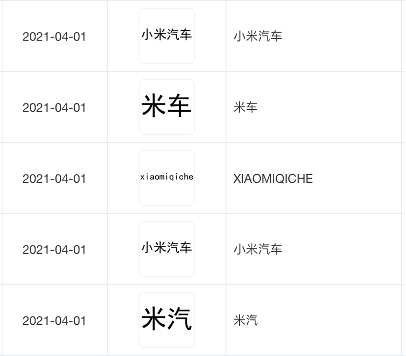 据公开信息显示,小米公司在4月1日申请注册多个“米车”商标,商标状态均为申请注册中。